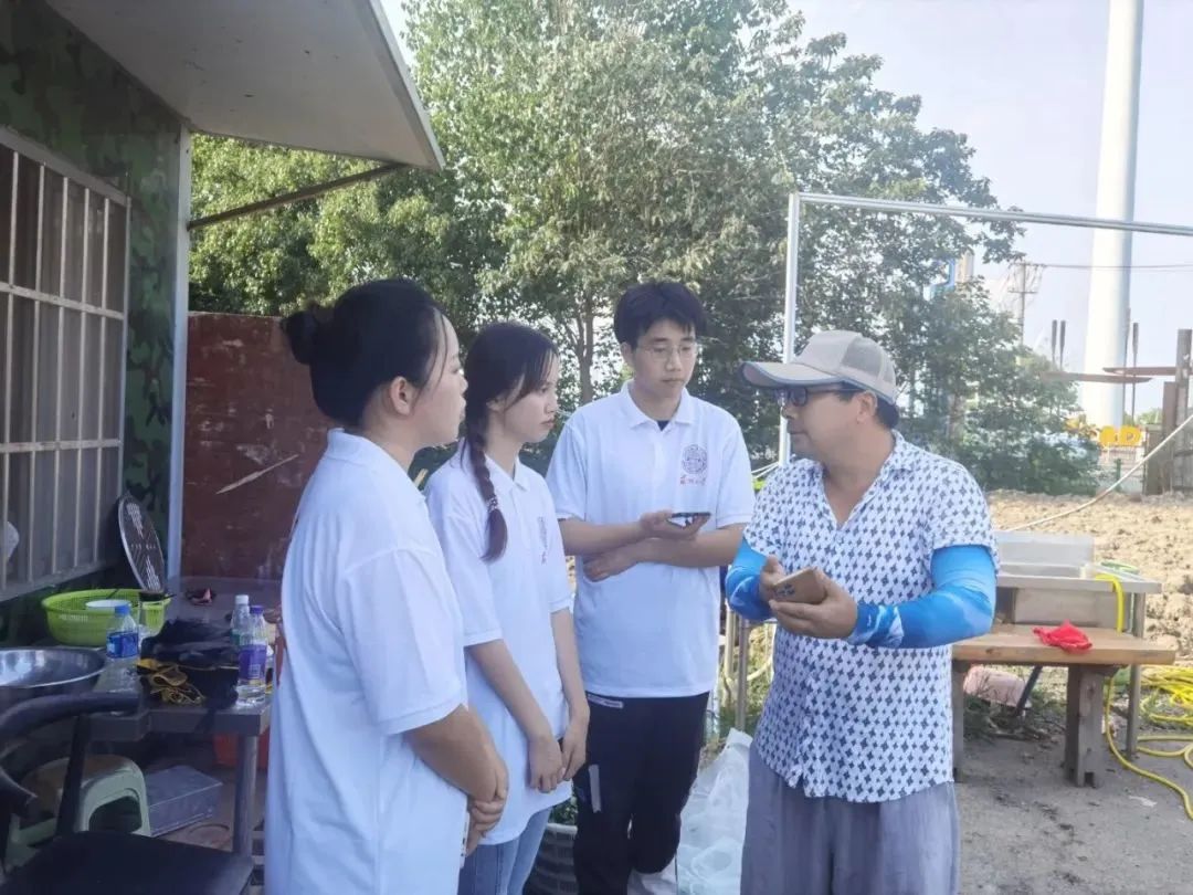 为深入了解大闸蟹养殖的具体方式,实践团成员前往巴城镇正仪村蟹农家中,对当地蟹农进行了深入访谈。由朱老师带领实践团成员采访了热情友善的蟹农,蟹农耐心地分享着养蟹二十多年来的经验。经过与蟹农的深入交谈,实践团成员不仅对蟹农的养殖工作有了一定的了解,也学习到了蟹农对待工作认真负责的态度和对生活的殷切热爱。