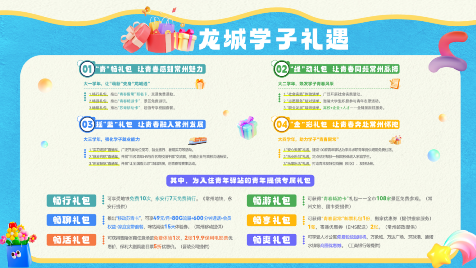 三是聚才引智,务求成效。在青年驿站内建立常态化引流机制,提供人才公寓宣传手册、咨询服务,并为留常青年提供从驿站到人才公寓的“一键代办”服务。入住驿站的年轻人30%都留在了常州,青年驿站“小盆景”有效带动了人才公寓“大生态”。同时,针对入住驿站但暂未选择留在常州的青年人才,联合驿站管理方建立动态跟踪联系机制,适时联系并及时推荐就业创业岗位和青年友好政策。青年人才通过驿站“小窗口”真切感受到了常州爱才引才的诚意,小红书上关于常州青年驿站的“种草、打卡、薅羊毛”攻略便是青年“好口碑”的最好证明。海南青年小金和四川姑娘小祝在网上相恋,了解到常州青年驿站免费入住的政策后,决定来常州“奔现”,体验一周后两人纷纷表示,“常州,‘赞刚佬’!毕业以后我们就来常州!”