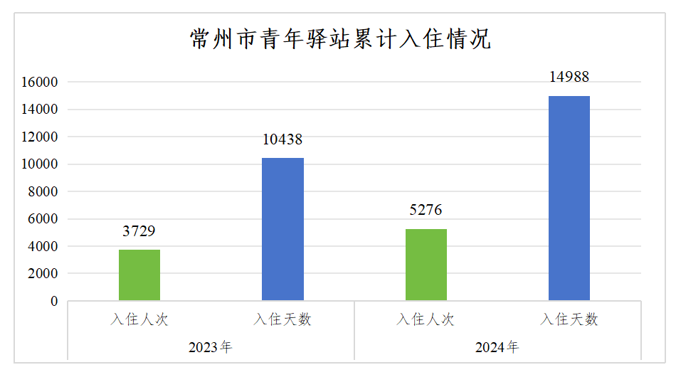 二是人才为本,服务为先。为就业创业、求职面试的来常青年提供最短3天、最长不超过3个月的免费入住,打好“青年驿站+人才公寓+生活居住双资助”的安心安居组合拳。同时,推出龙城学子礼遇礼包(见图3)、青年驿站服务10条(见图4),提供就业推介、城市融入等综合服务,精准满足大学生就业创业需求,获央视新闻关注报道。来自安徽的研究生小陈入住青年驿站后表示,“我收到天合光能的offer后就匆匆来常州了,房子没来得及租,却很快得以安居,免费入住的政策太赞了!选择常州,没有错”。2023年以来,常州青年驿站共开放床位3000余个,累计入住9000余人次、25000余天,上线驿站数量、入住人数和入住天数均位居全省前列。其中2024年累计入住近6000人次、近15000天,上线驿站数量、入住人数和入住天数均位居全省第2(见图5)。