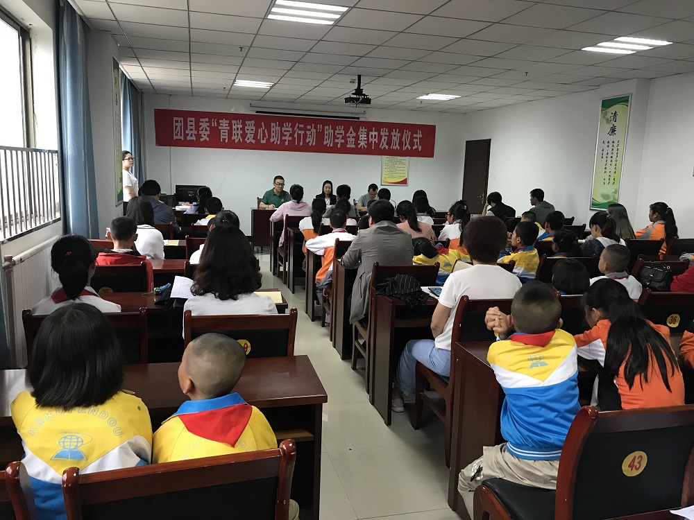 凤翔团县委全体机关干部、各镇团委负责人、大队辅导员、受助学生及家长,共计70余人参加活动。受江苏省青联秘书处委托,凤翔团县委为该县50名建档立卡贫困户家庭小学生每人发放助学金1000元,共计发放助学金5万元整。