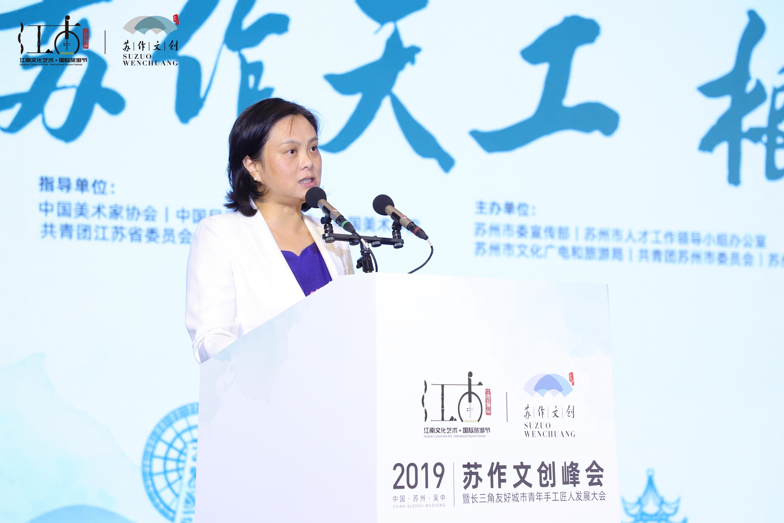 在上午的峰会上,苏州市委常委、宣传部部长金洁讲话。她指出作为首批历史文化名城,苏州是吴文化的发祥地,古典格局,诗意江南,二千五百年的苏州文明熠熠生辉。希望在各位业界专家学者、苏州市以及吴中区的共同努力下,形成苏作文创企业“铺天盖地”,优秀人才、作品“顶天立地”的良好局面。