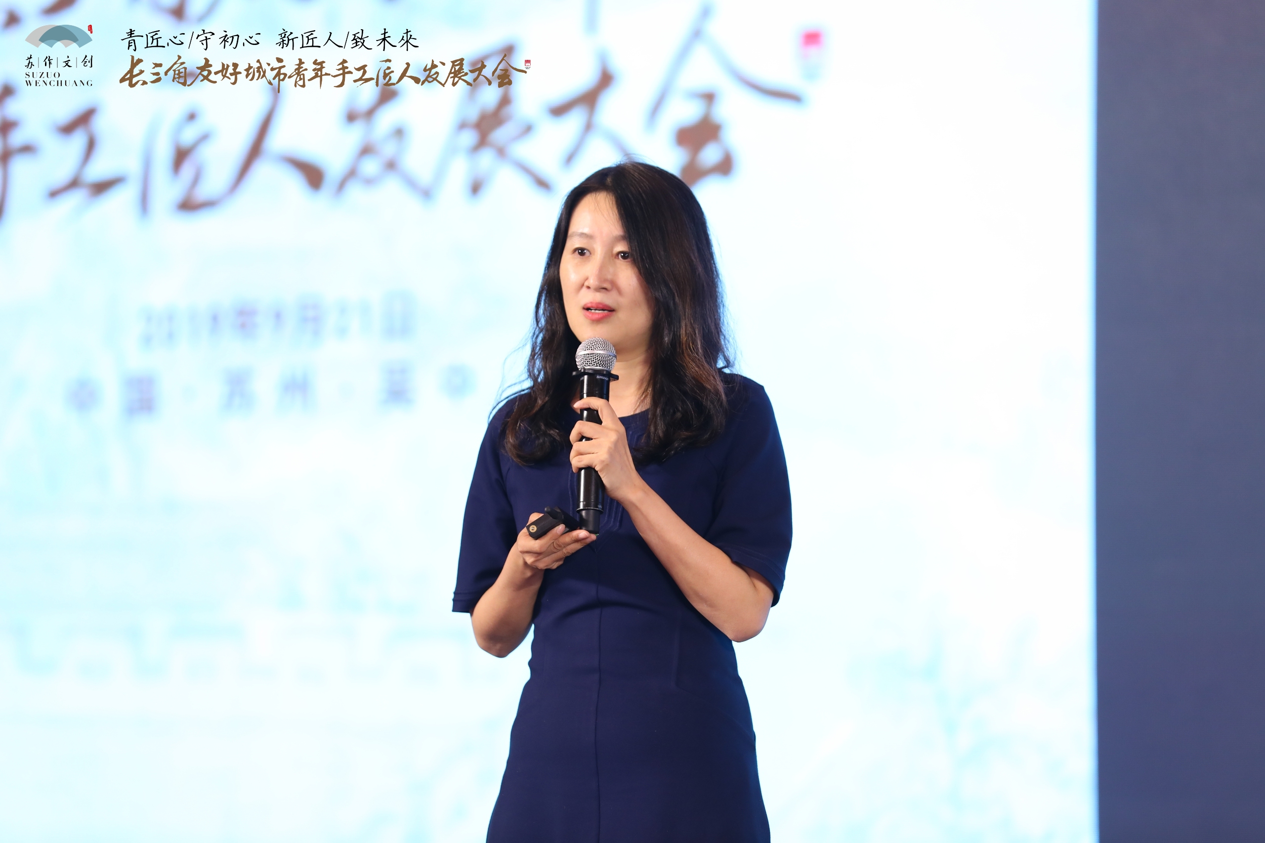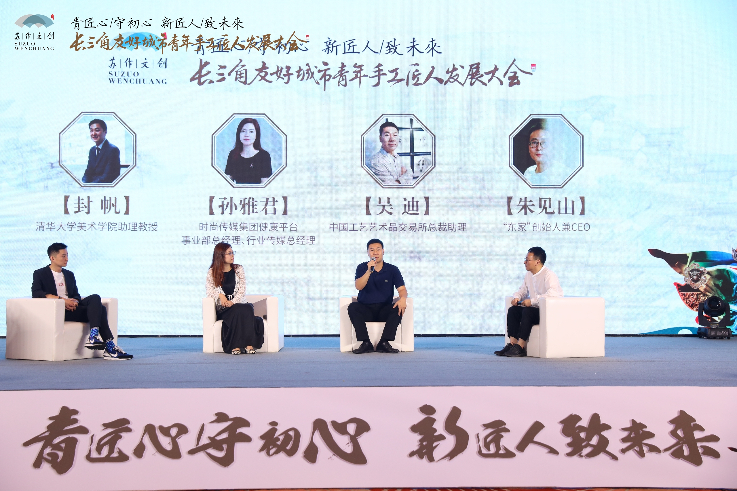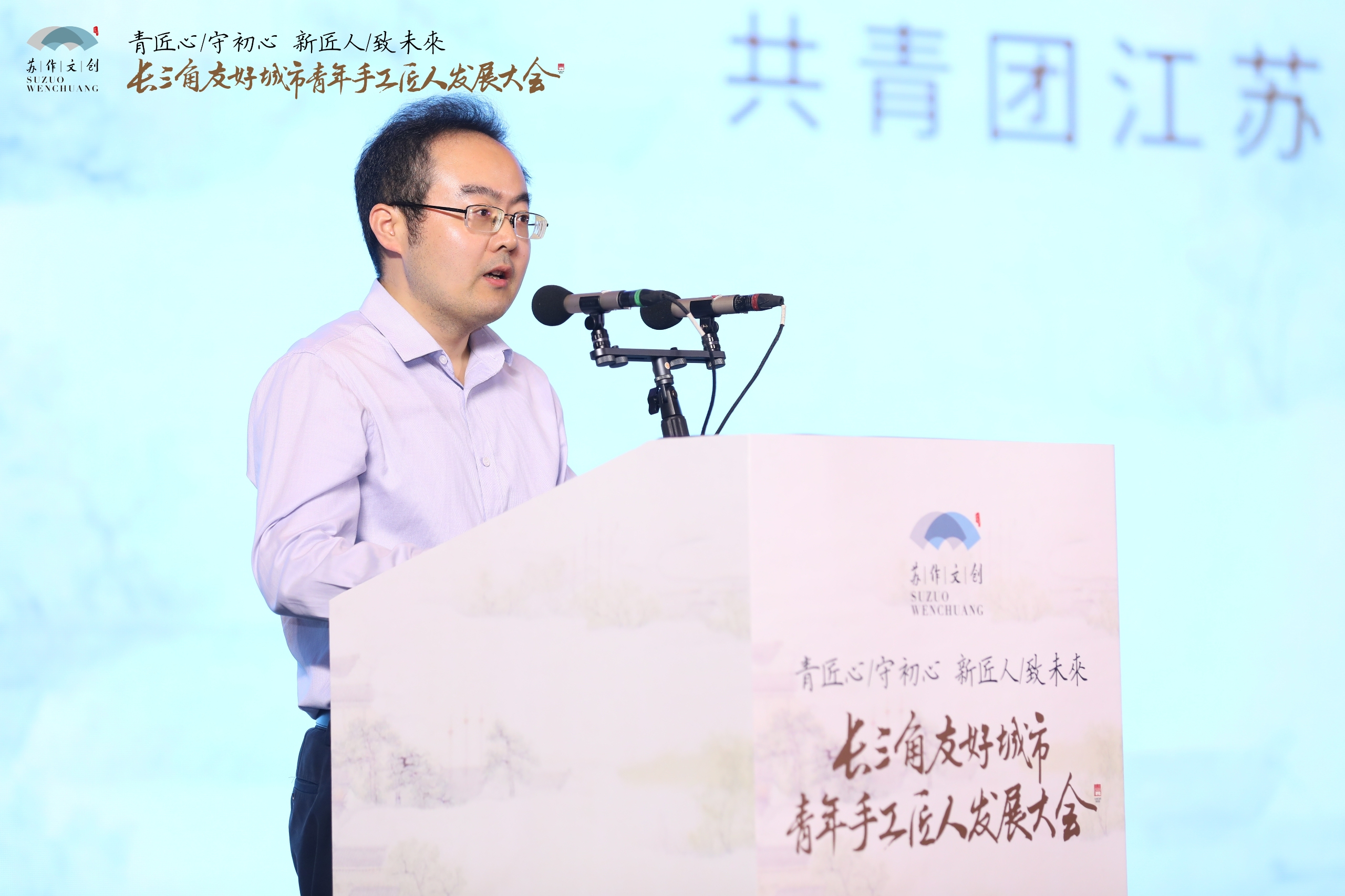 江苏团省委副书记潘文卿致辞,他指出,青年工匠精神是一种坚守、一种创新、一种务实,希望在各位业界专家学者的鼎力支持下,在苏州率先发起和先行实践下,长三角青年手工匠人能够更加密切交流与合作,借力苏作文创峰会,形成长三角传统文化产业和手工技艺行业共同发展的良好局面。