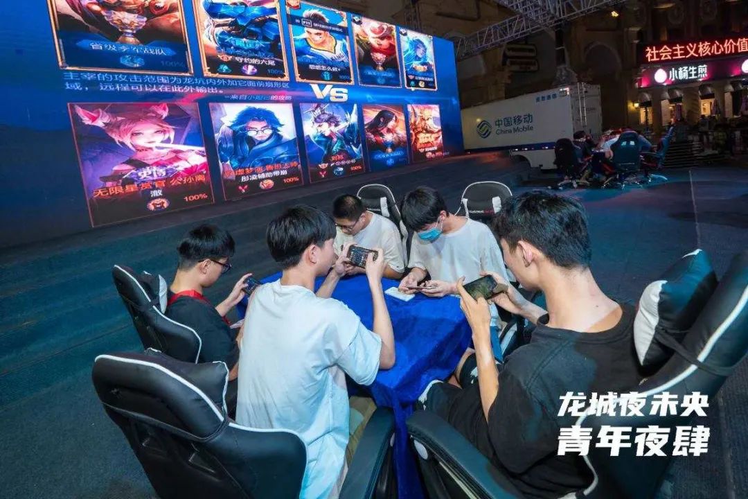章欣等电竞选手们承包了夜肆另一端热点——王者荣耀精英赛让选手们团魂再燃,配合默契,用精彩的表现向所有观战者证明了自己的实力。三个钟头,几场鏖战,外围始终有近千人围观,这或许正是王者荣耀的魅力所在吧!