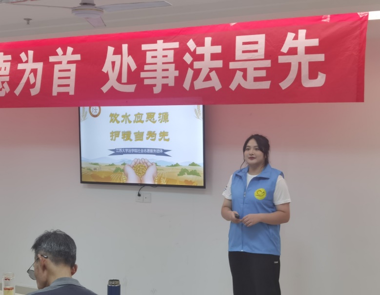 为了宣扬反对浪费、崇尚节约的生活理念,江苏大学法学院“饮水应思源,护粮当为先”社会实践团队走进丁卯社区开展了以保护粮食为主题的宣讲活动。志愿者向各位居民发放了爱粮护粮的宣传单,给居民逐一讲解了宣传单上的内容,并结合时事热点,向社区居民讲述了国内粮食现状。