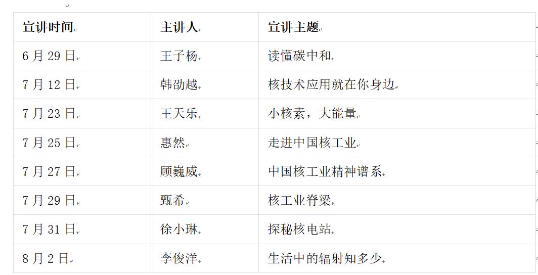 为引导广大青年学生理解和把握实现碳达峰碳中和的重要性,贯彻新发展理念、构建新发展格局、推动高质量发展,对核工业有更加深入的了解。同时也希望减少调查问卷中所反映出的大众对于核工业的误解,“青年‘核’力,低碳绘绿”志愿服务队开展“强国有我,‘核’你一起”系列宣讲活动。宣讲活动分为八个小主题,每一个主题分别对应着核工业的各个方面。