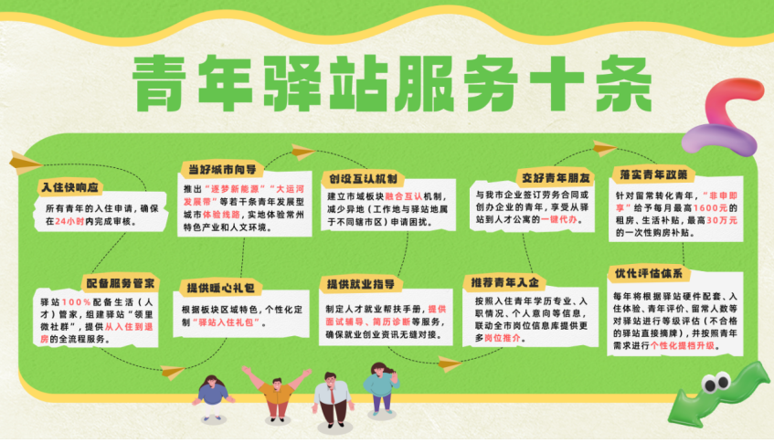 三是聚才引智,务求成效。在青年驿站内建立常态化引流机制,提供人才公寓宣传手册、咨询服务,并为留常青年提供从驿站到人才公寓的“一键代办”服务。入住驿站的年轻人30%都留在了常州,青年驿站“小盆景”有效带动了人才公寓“大生态”。同时,针对入住驿站但暂未选择留在常州的青年人才,联合驿站管理方建立动态跟踪联系机制,适时联系并及时推荐就业创业岗位和青年友好政策。青年人才通过驿站“小窗口”真切感受到了常州爱才引才的诚意,小红书上关于常州青年驿站的“种草、打卡、薅羊毛”攻略便是青年“好口碑”的最好证明。海南青年小金和四川姑娘小祝在网上相恋,了解到常州青年驿站免费入住的政策后,决定来常州“奔现”,体验一周后两人纷纷表示,“常州,‘赞刚佬’!毕业以后我们就来常州!”
