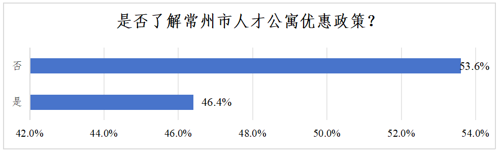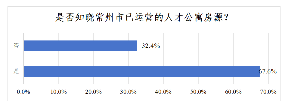 四是宣传推介“颗粒度”较低。当前政策宣传初步解决了青年对“常州有没有人才公寓”的疑问,但对“人才公寓优惠政策具体是什么”“如何顺利申请人才公寓”等实操性问题仍存在宣传空白。互联网上关于“常州人才公寓”的信息繁杂且良莠不齐,搜索该关键词出现不少房产中介广告,既影响青年入住体验,也有违政策初衷。调研中,有53.6%的被调研者表示不太了解当前人才公寓具体优惠政策(见图7),32.4%的被调研者表示不知晓常州市人才公寓房源(见图8)。官方平台“我的常州”APP—“人才公寓在线”专栏未做到外来青年“人尽皆知”,微信小程序“常州人才公寓”停止运营维护已达半年之久,让许多青年留下“差评”。