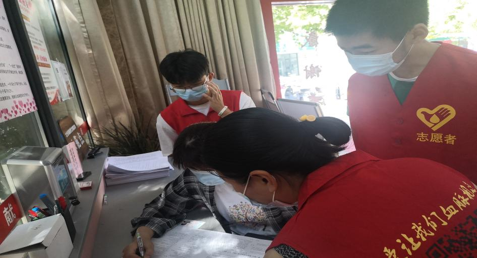 志愿服务开始后,前来咨询和登记献血的人越来越多,他们询问者关于献血的注意事项和相关政策,志愿者也很热情地回答他们。大家自愿的为社会奉献出自己一份爱心,促进无偿献血事业健康持续发展。填表、量血压、化验、抽血……志愿者们渐入佳境熟练的与献血者交流同时并给献血者递温水,细心提醒献血过程中及献血后要注意的事项。志愿者们思虑周到、热情满满,所有的流程在志愿者们协调下井然有序地进行。