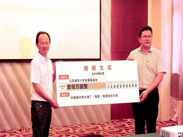 仪式上,江苏国酒茅台有限公司副经理杨韬介绍了茅台集团的发展思路及推进公益行动的具体措施,江苏国酒茅台有限公司经理张成军向省青基会捐赠100万元助学金,参加活动领导向部分学生代表 发放了助学金,受助学生代表作了发言。