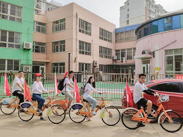 活动中志愿者们先后采访了辅导员包家官老师、应院先锋献血者李涛老师、应院党委副书记万金店老师、连云港市第一人民医院输血科王主任、血站孙主任。与老师们的对话中志愿者们得到许多启发,对志愿者们今后宣传无偿献血的工作有很大帮助。为了让学生初步掌握自救互救知识,提高自救互救技能。无偿献血的志愿者于2019年7月4日上午在江海大艺术楼报告厅开展了急救知识培训活动。接下来的工作中,志愿者们连续几天分别在振兴大厦、苏宁广场门口及大润发附近进行了“无偿献血”活动的宣传和调研,以此加大宣传力度。在本次活动中还进行了自行车骑行宣传活动,志愿者们顶着夏季的炎热在社区和各个街道里进行无偿献血的宣传。