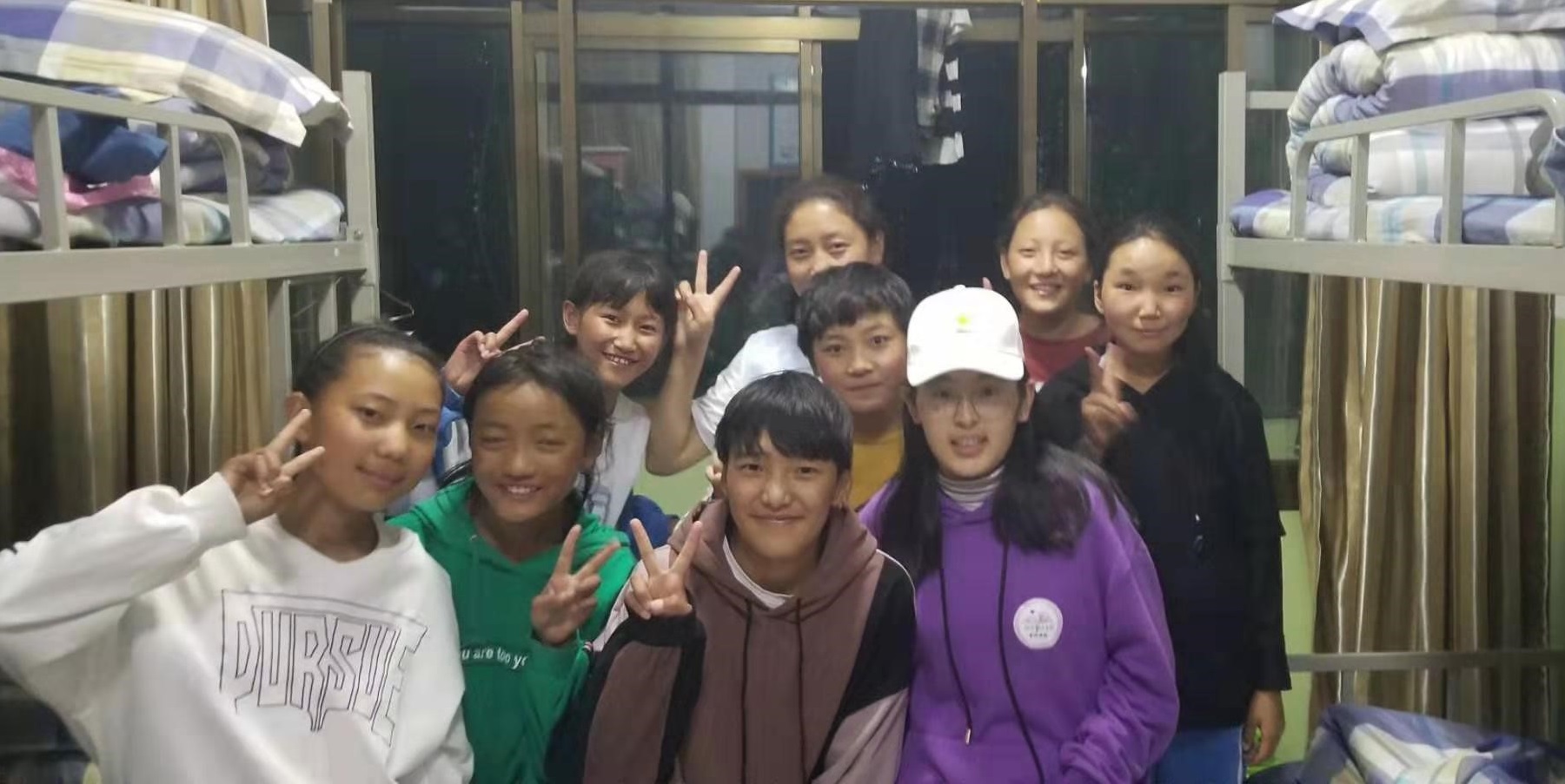 图4:团队成员与孩子们在宿舍合影