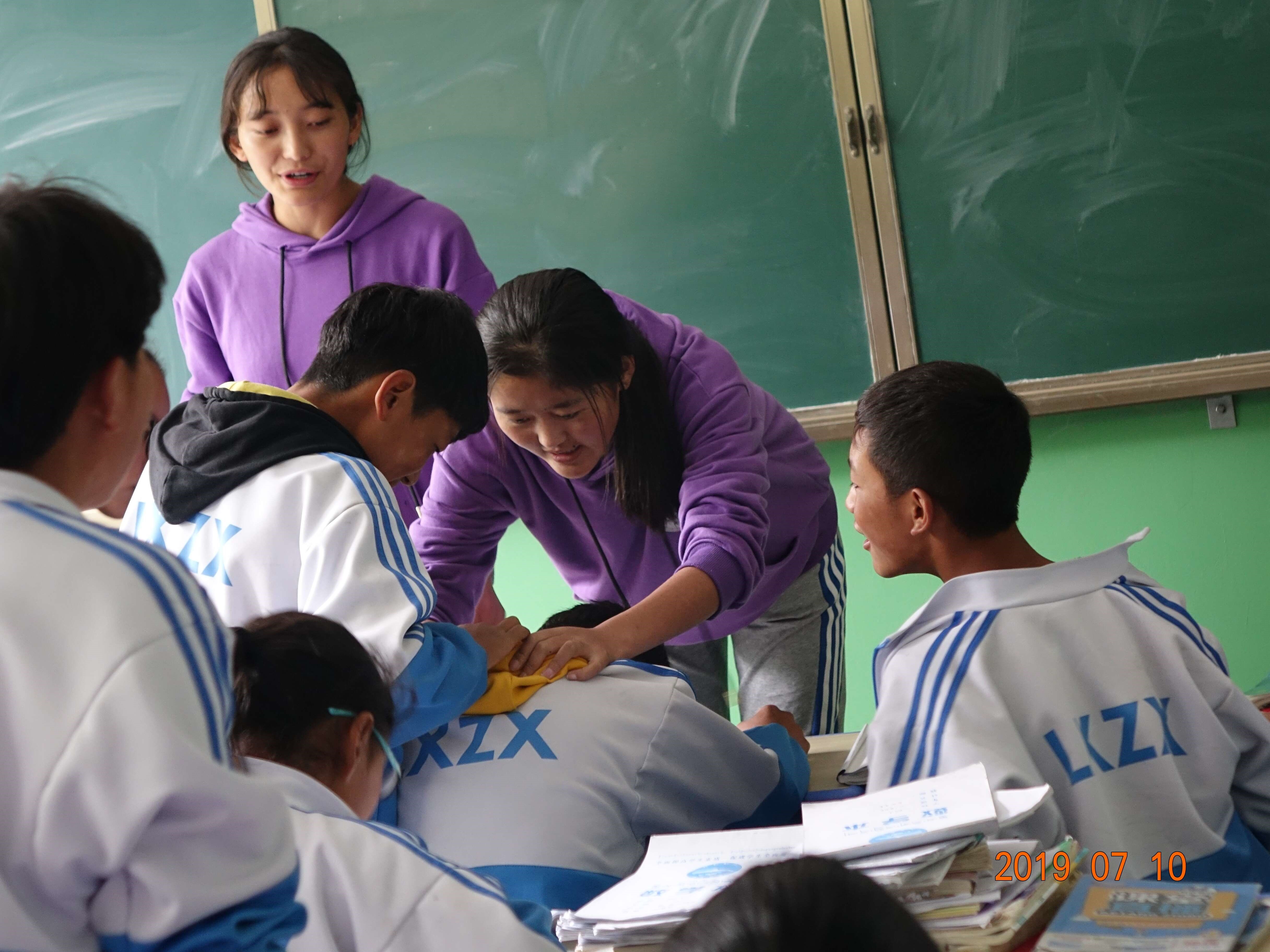 实践队员们很快忙碌起来,精心组织英语课、心理课、手工课、手语课以及推拿等多种形式的素质拓展课程。在课程顺利推进的过程中,队员们也发现了让他们心酸的地方——在英语课上,他们发现有的八年级学生还没有掌握四个季节的英语说法;心理课上,有学生因为不会写自己“宇航员”梦想中的“航”字,而相互开玩笑……教学过程中的发现让实践队员们更为真切地体会到教育质量的差距,同时也更坚定了心中的使命感:在有限的时间里,把更多的东西带给孩子们。