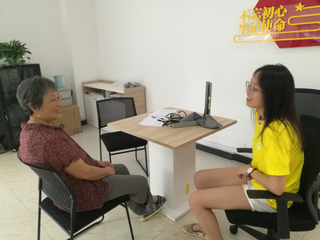 一大早,团队的志愿者们就带上医疗器械赶到了义诊地点。埭伍桥社区大部分都是老年人,年龄大都在70岁以上,长年被疾病困扰,及时就诊就医成为老人们的一大热切盼望。在义诊现场,团队成员们为前来就诊的居民进行了认真细致的检查,耐心询问他们的日常习惯及身体状况,并针对病情做出专业性诊断,就饮食、生活各方面提出建议。