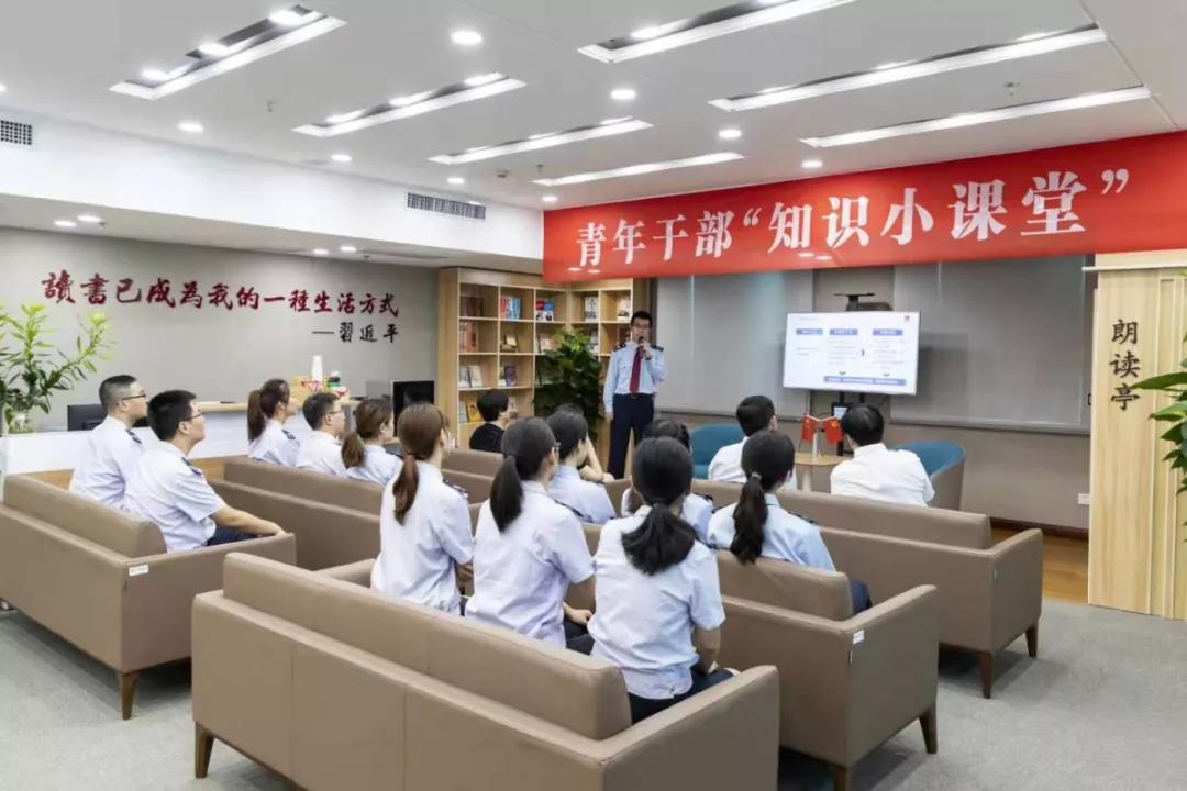 蓝莲花青年学习社是市税务局打造的青年学习交流阵地,目前已获评市级青年学习示范社。蓝莲花学习社建设结合税务行业特点,将意识形态常态化教育与业务知识学习结合起来,供给内涵丰富、形式新颖、青年欢迎的学习内容,吸引团员青年踊跃参与。大家通过实地观摩、观看宣传片、聆听“税团团”课堂等形式,了解了税务团建工作成效和税务青年的行业风采。