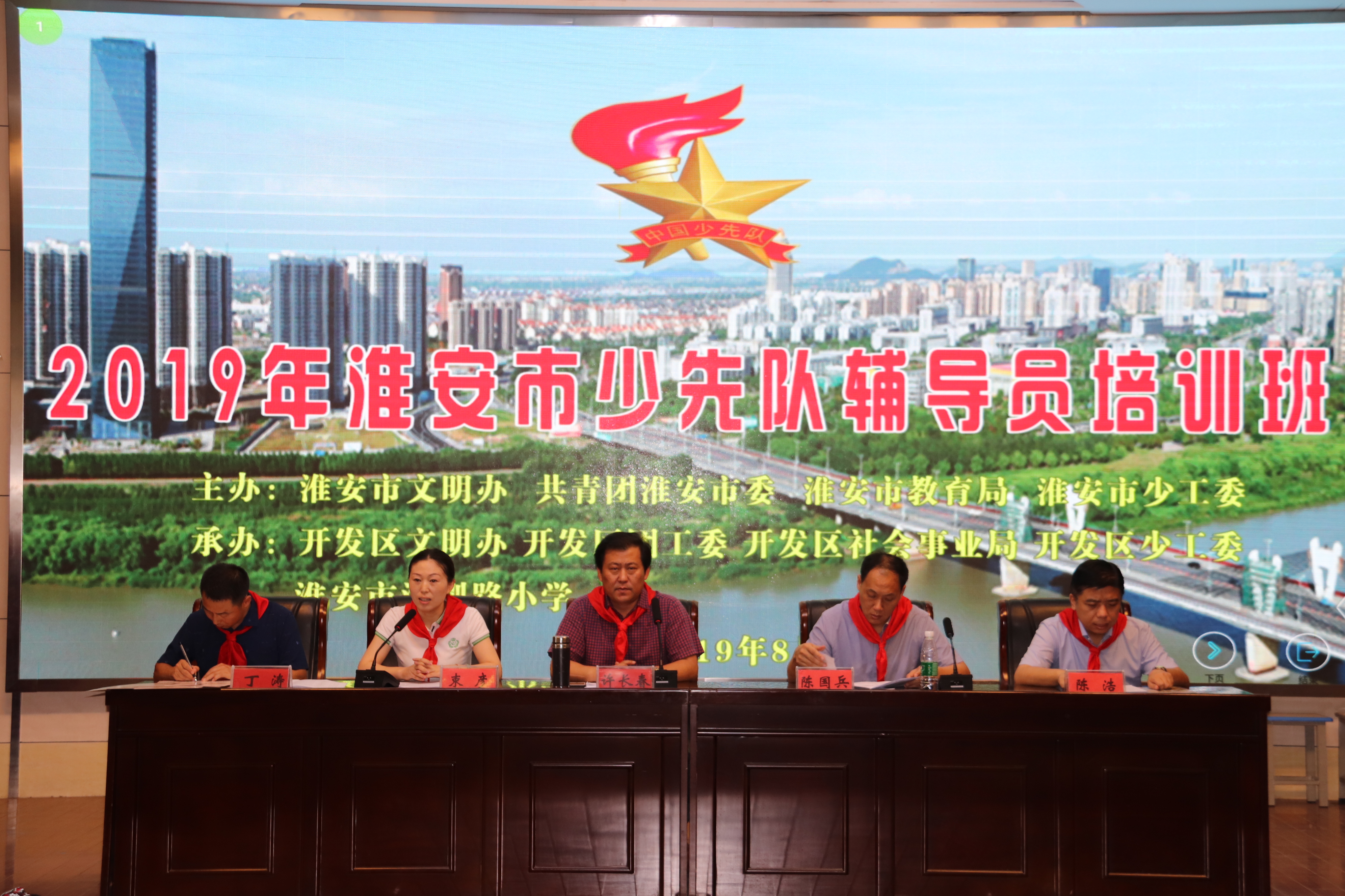 8月12日至14日,由市文明办、团市委、市教育局、市少工委共同举办的2019淮安市少先队辅导员培训班在市深圳路小学举行。中国少先队工作学会副会长华耀国,省少工委副主任、团省委中少部部长张志方,团市委书记李义翠,市委教育工委副书记、市少工委主任高荣,市文明办副主任王建国,开发区社会事业局副局长蒋寿桐等领导以及全市150余名少先队辅导员参加培训班开班仪式,开班仪式由市少工委副主任、少先队总辅导员许长春主持。