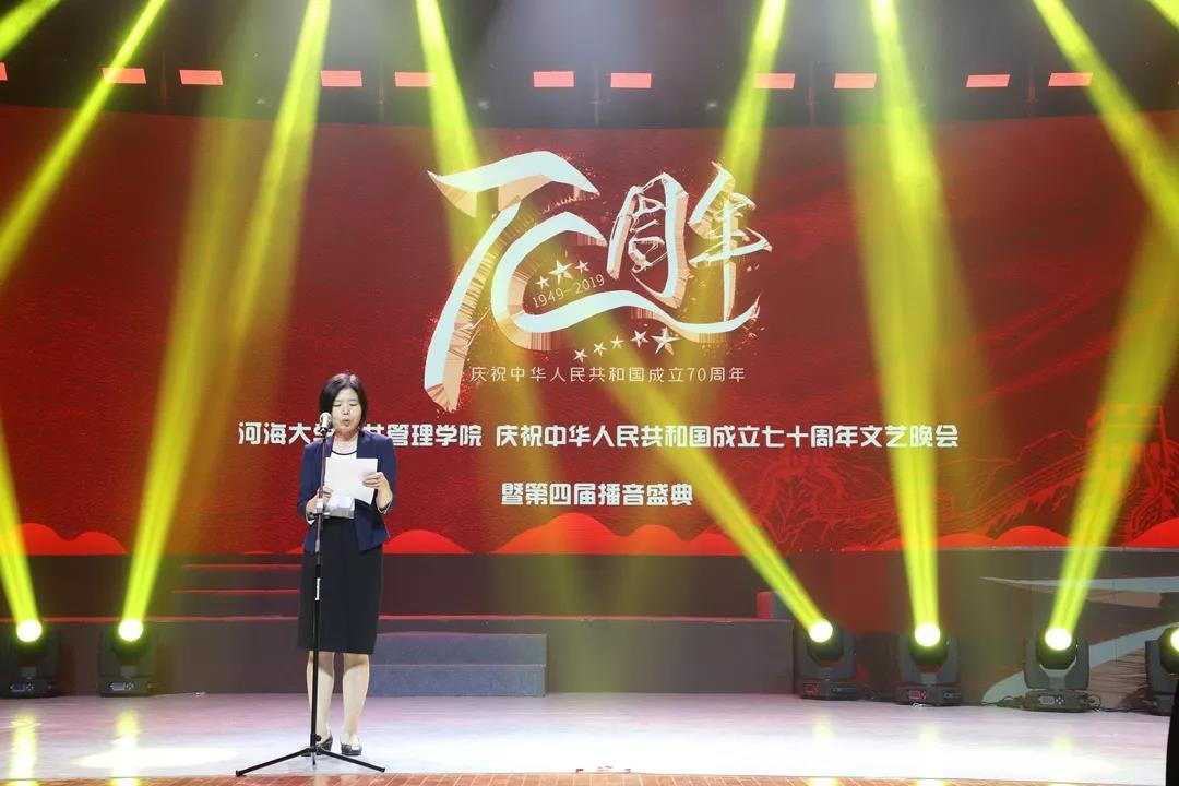今年是中华人民共和国成立70年周年,昨晚,在河海大学江宁校区文体中心剧场,河海播音与主持专业师生将他们对祖国生日的祝福凝聚为一场精彩的晚会——“河海大学公共管理学院庆祝中华人民共和国成立七十周年文艺晚会暨第四届播音盛典”,晚会通过《青春告白祖国》、《建国大业》、《我和我的祖国》三个篇章,用青春深情向祖国告白!