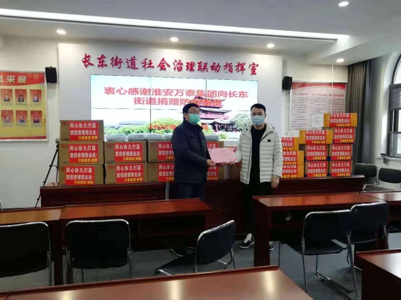 淮安万泰集团向城区街道捐赠3.6万元物资