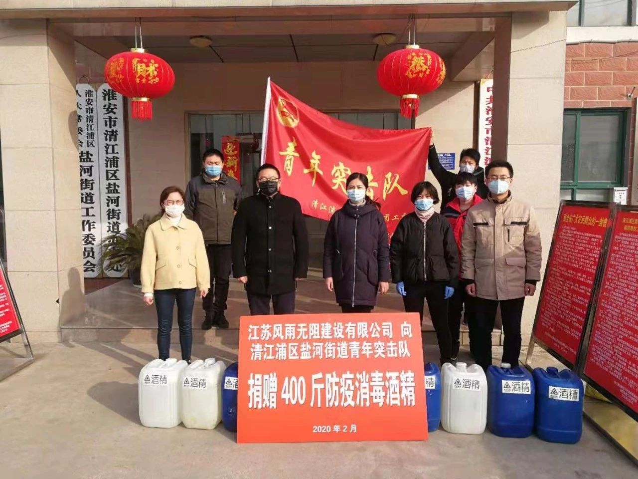 江苏风雨无阻建设有限公司向盐河街道捐赠400斤防疫消毒酒精