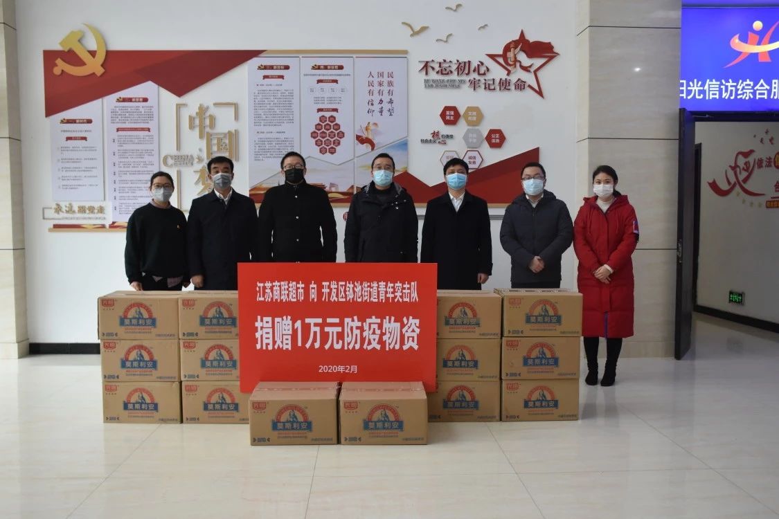 江苏商联超市向钵池街道青年突击队捐赠1万元物资