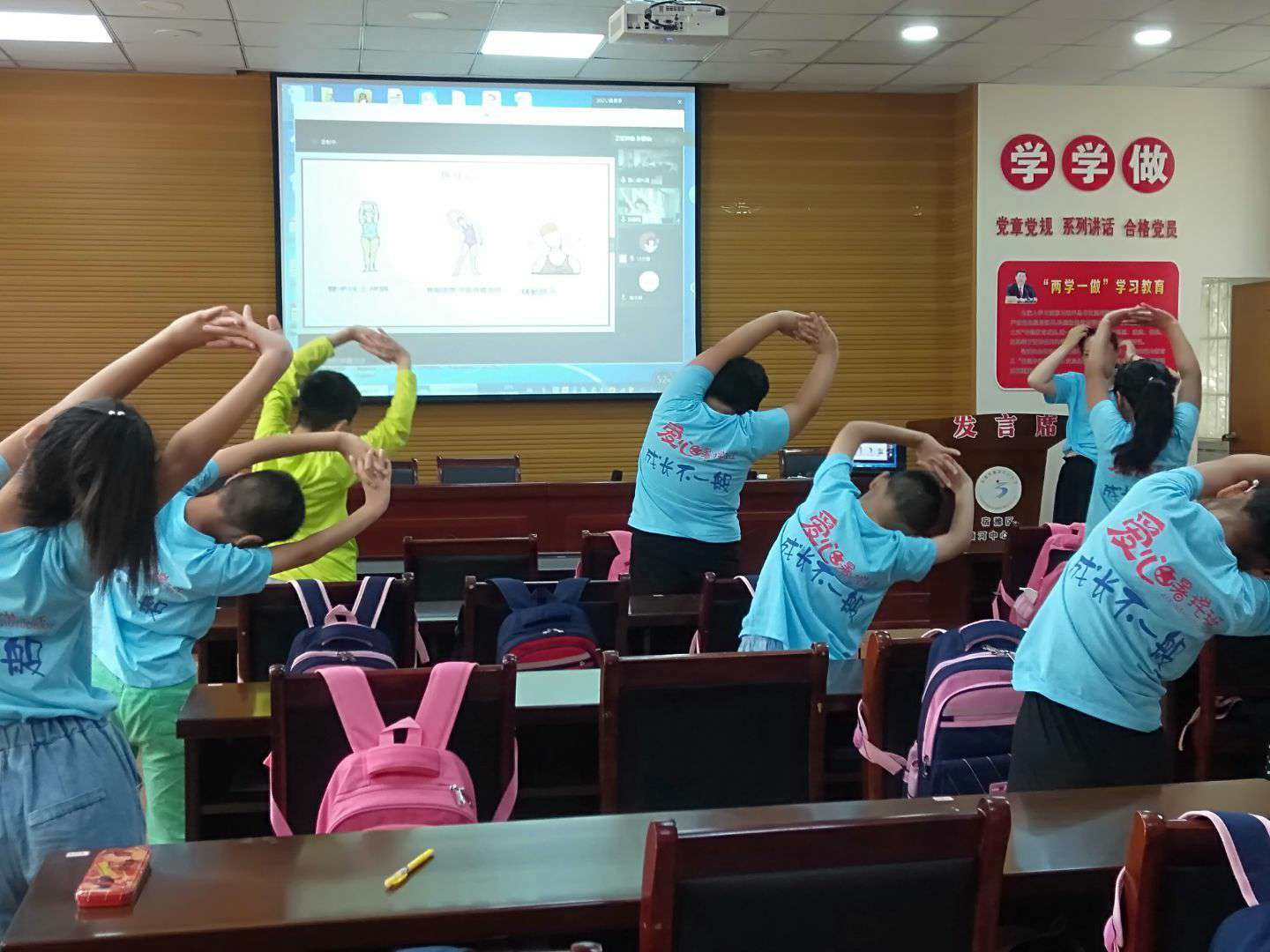 图为爱心暑托班孩子们与实践团成员“云”端共舞