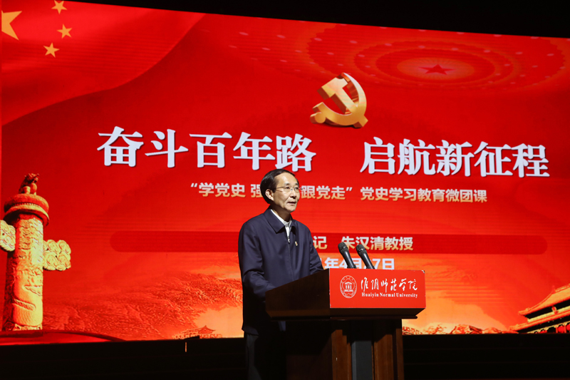 朱汉清为在场的1000余名团员青年开设一堂主题为《奋斗百年路 启航新征程》的党史学习微团课。他以中国共产党经历的四个重要历史时期为线索,回顾总结了中国共产党百年奋斗的光辉历程和历史性贡献。希望同学们以党史为鉴,从党史学习中拓宽格局;学深学细,从党史学习中汲取营养;入心入脑,从党史学习中传承精神,鼓励同学们从党史学习中提升自我,以坚定的信心去诠释属于青春的时代价值。他勉励团员青年们在党史学习教育中焕发出奋斗精神和青春热情,努力成为堪当民族复兴重任的时代新人,让青春在不懈奋斗中绽放绚丽之花,以蓬勃向上的青春姿态向建党一百周年献礼。