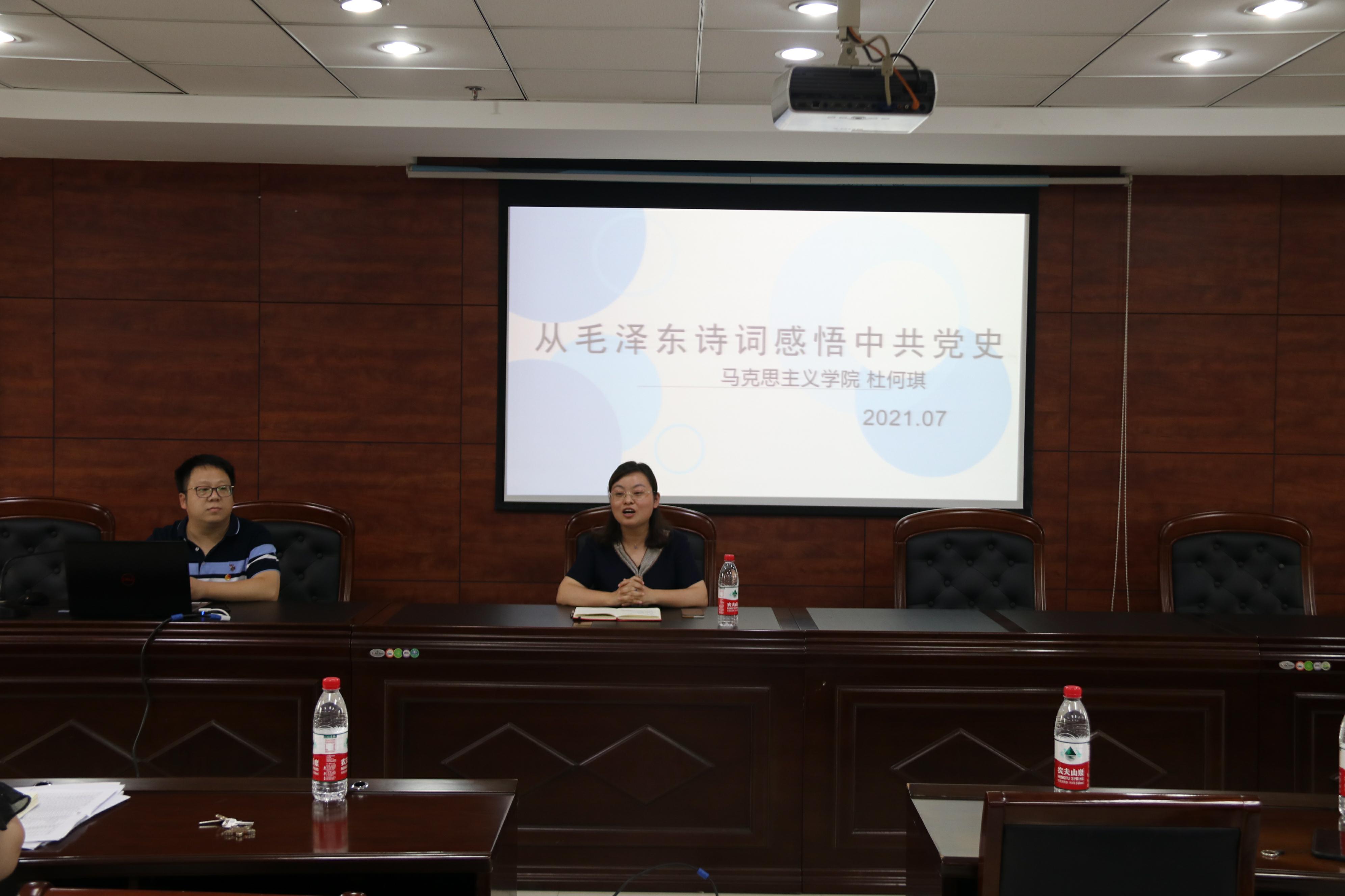 “党建引领乡村振兴”实践团在江苏省溧阳市南渡镇开展走访调研和政策宣讲活动。实践团邀请了南京农业大学马克思主义学院教师杜何琪为基层村庄的“红管家”“四史”学习联络员和基层组织干部做“从毛泽东诗词中感悟中共党史”主题讲座,带领他们一起领略毛泽东诗词纵览天下风云、俯瞰历史兴衰、把握时代潮流的先进性,从中加深对中国共产党百年辉煌党史的认识与了解,体会共产党人始终如一的初心与使命。