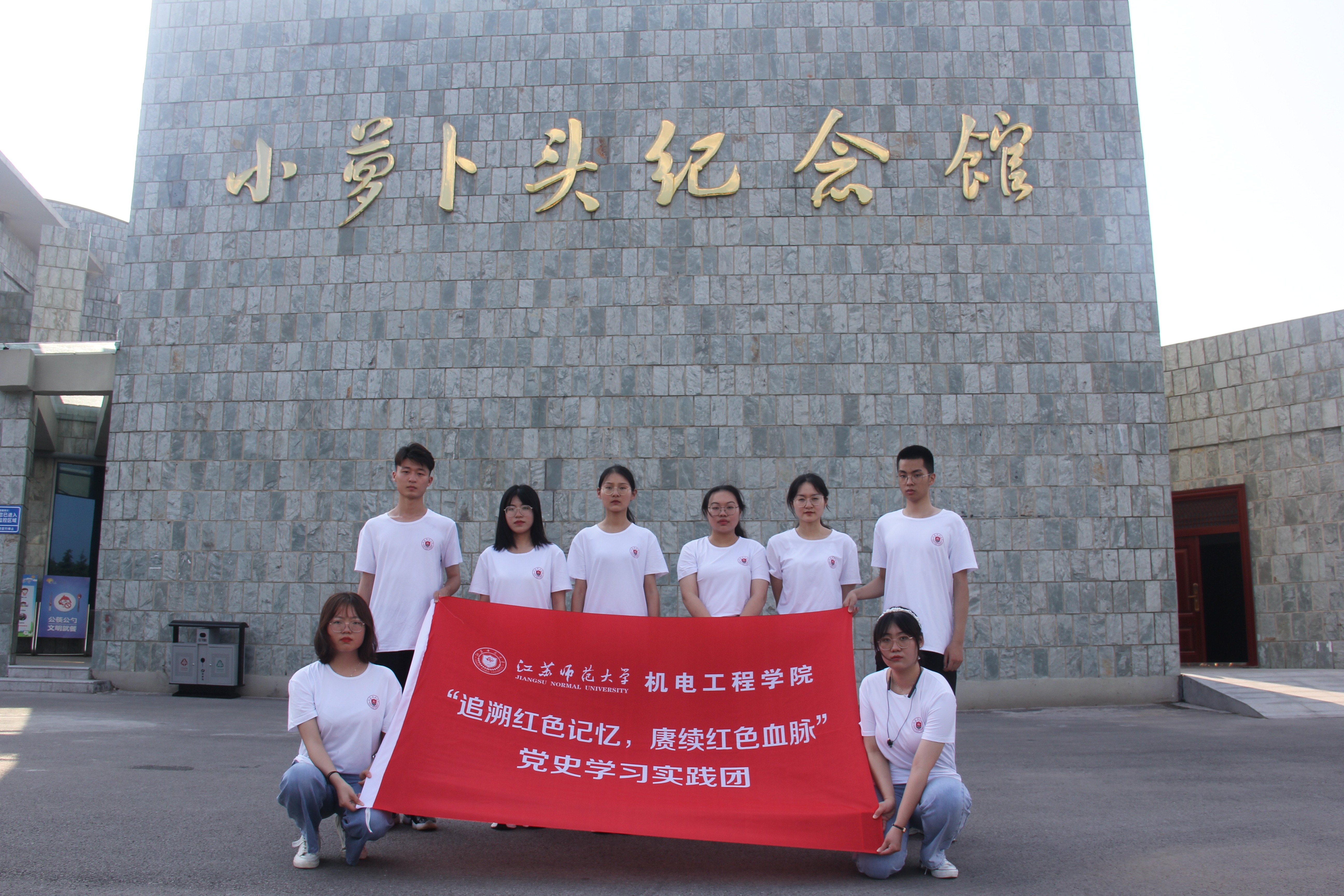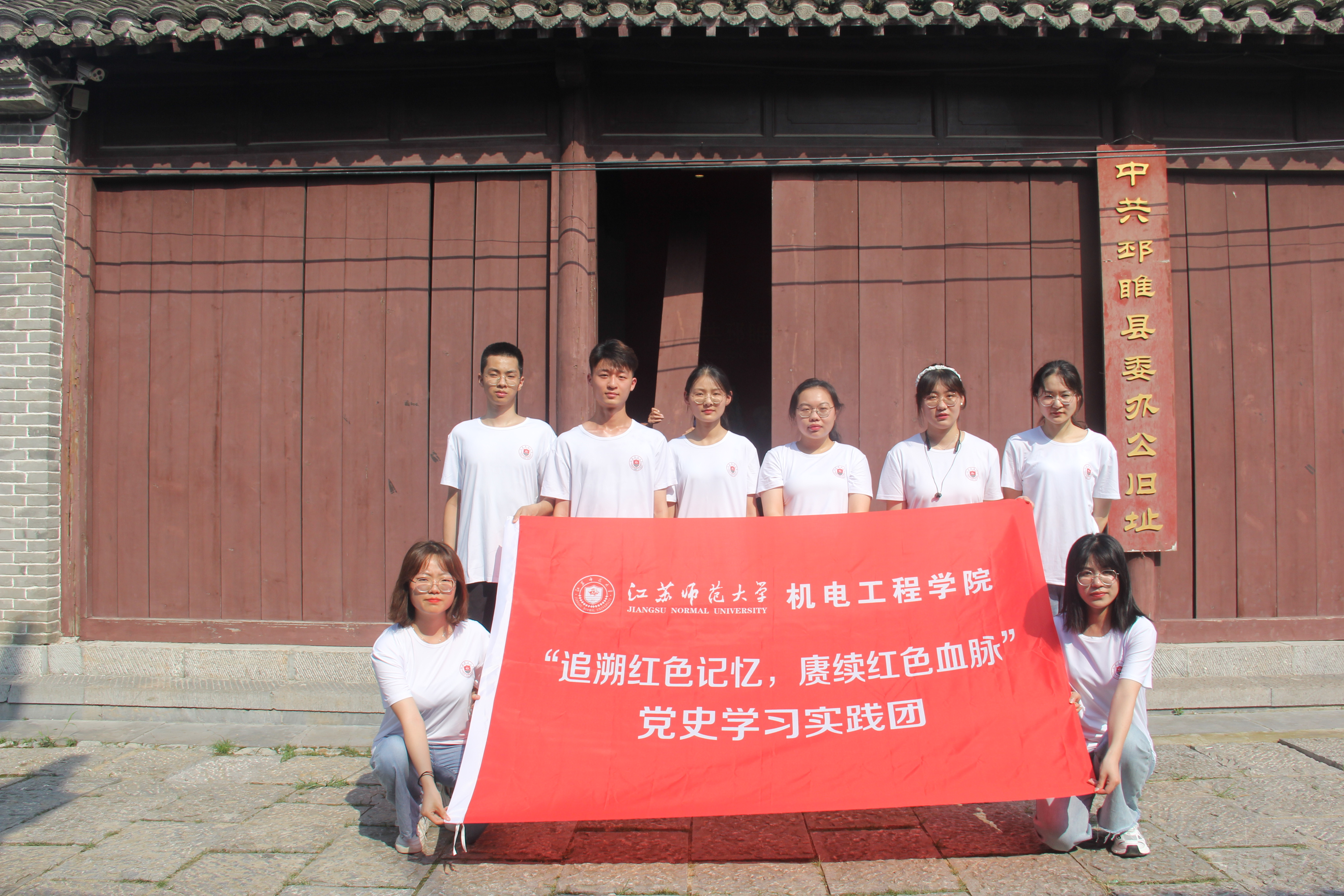 2021年是中国共产党成立100周年,是“两个一百年”奋斗目标历史交汇的关键节点,为深入学习贯彻习近平总书记在庆祝中国共产党成立100周年大会上的重要讲话精神,引领学生在社会实践中厚植爱党、爱国、爱社会主义的情感,7月9日至7月11日,江苏师范大学机电工程学院组织开展“重温百年党史 赓续红色血脉”党史学习社会实践活动。实践团前往徐州市邳州市开展为期3天的实地调研学习。实践团在暑期社会实践中创新教育形式,通过参观学习、发放问卷、专题访谈、党史宣讲等方式开展社会实践,将党史学习教育与专业实践相结合,引领学生在社会实践中受教育、长才干、作贡献。