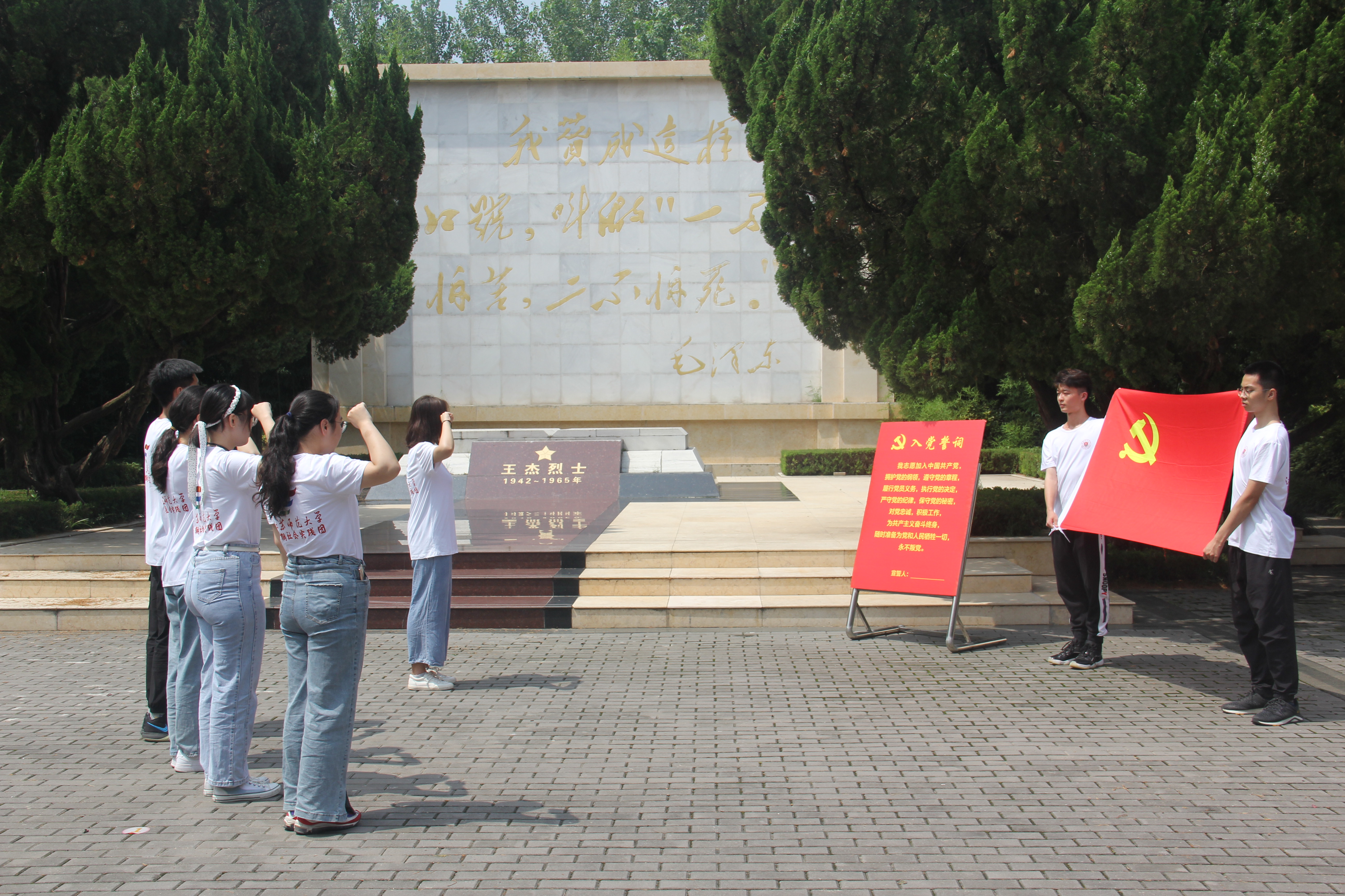 一幅幅照片,一件件实物,一段段视频影像真实再现了王杰烈士有血有肉的英雄故事,深深地感染了每一位实践团成员。在王杰烈士墓,实践团成员肃立默哀,致敬烈士,表达对革命烈士的缅怀之情。在革命烈士纪念碑前,全体学生党员面对党旗,重温入党誓词。实践团成员纷纷表示通过学习王杰精神,团队成员更加坚定了理想信念。在今后的实践活动中团队成员将以实际行动学习践行王杰精神,让王杰精神绽放新的时代光芒。