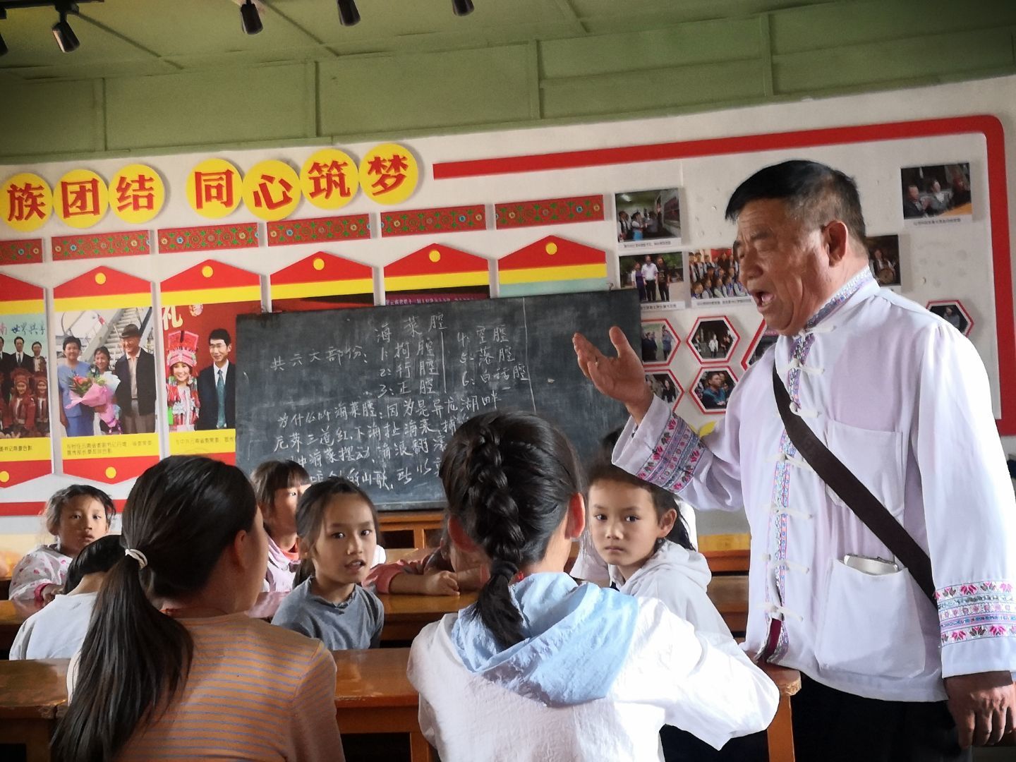团队成员走进非遗传承班的海菜腔课堂,坐在教室后与学生们一起学习后宝元老师教唱海菜腔,在学习过程中了解到彝族海菜腔歌唱历史悠久,在形成及发展过程中深受明清时期汉族移民所带来的汉族文化影响。清代以来的地方志中,有很多关于海菜腔歌唱的记载和诗文。彝族海菜腔篇幅较长有特定的旋律,唱词从内容上可分为十一种类型,其演唱基本形式多以一人唱众人合为主,也有男女对唱等。团队成员在整齐宏亮的海菜腔歌声中感受到了彝族人民的热情待人、热爱生活、与人友好的人文特色,彝族人民通过歌唱的方式谱写人生故事,诉说喜怒哀乐、别离惆怅。