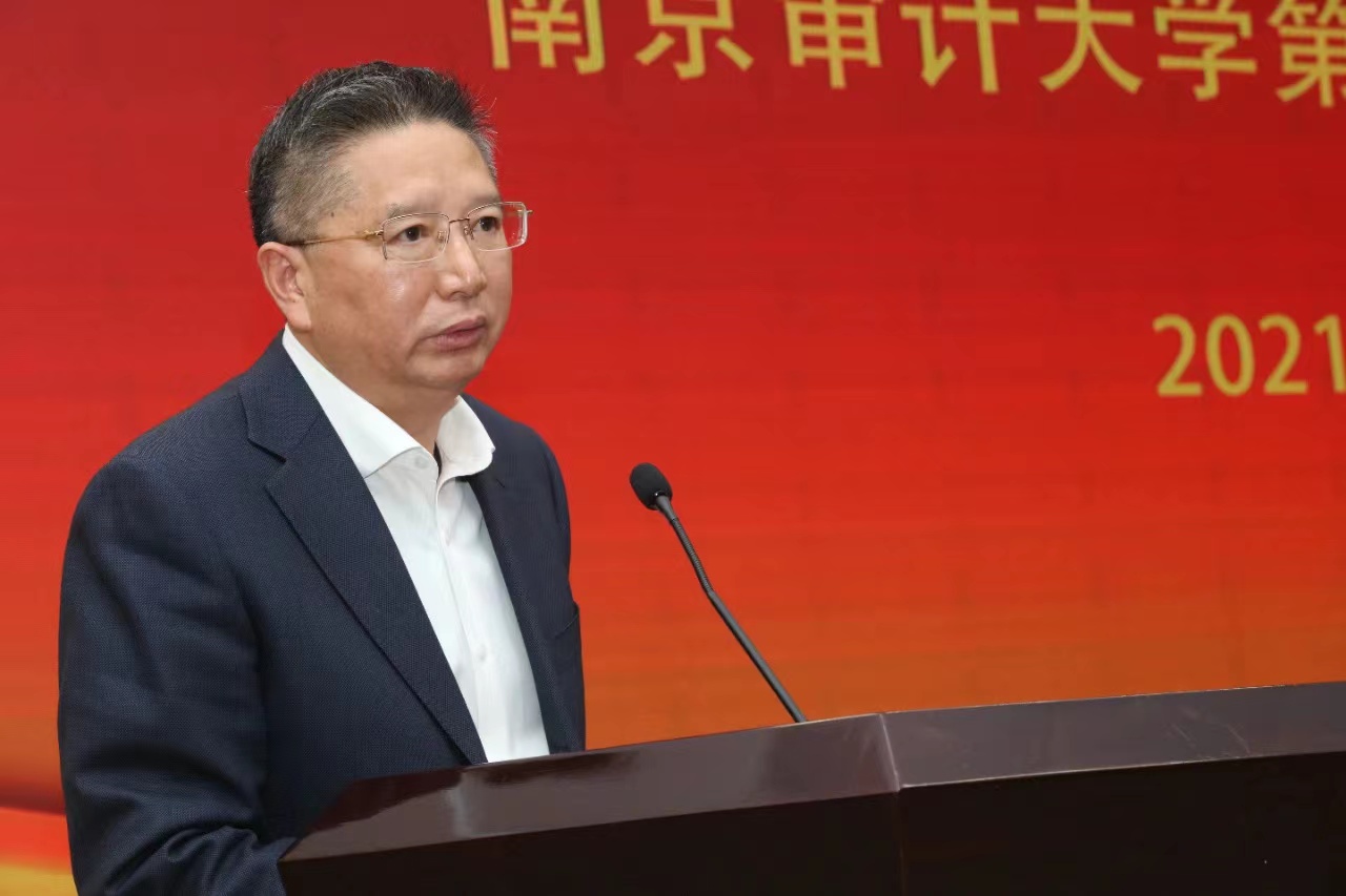 任珂宇同学向与会代表宣读大会倡议:团结协作,追求卓越,为建设有国际影响力的特色审计大学而努力。乐于求知,兼容并包,为成为社会主义事业合格建设者和接班人而拼搏。脚踏实地,勇于担当,为成为一名合格的共和国经济安全的守护者而奋斗。