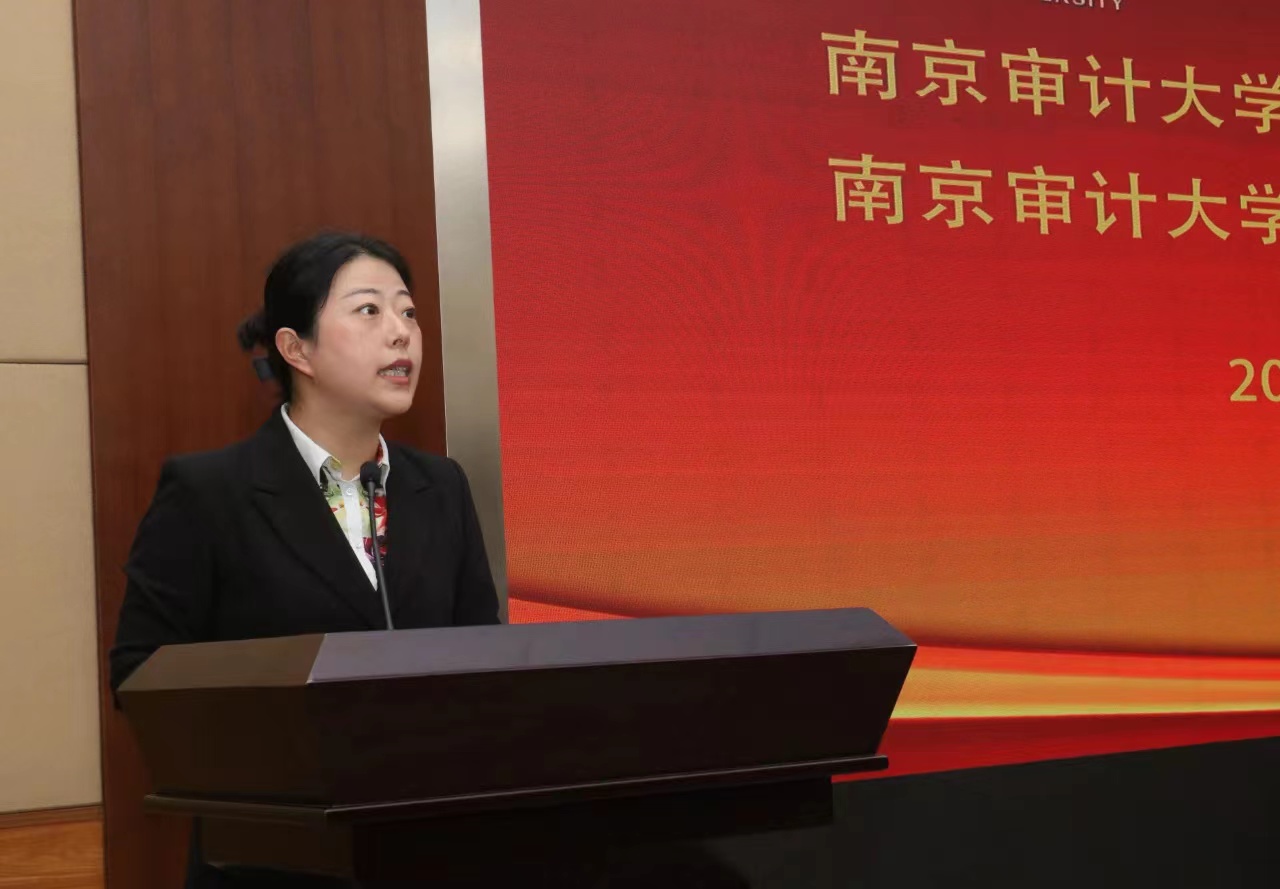 南京师范大学学生会主席团成员张吉玉代表兄弟院校致辞。她表示,南京审计大学近年来不断加强思想引领,提高政治站位;不断聚焦主责主业,切实服务同学;深入贯彻落实全国学联二十七大会议精神,在提升同学满意度、大局贡献度、社会认可度上下功夫。希望南师大学生会和南审学生会在今后的工作中共同努力,加强沟通,共同营造富有理想、关心同学、清新阳光的组织形象。