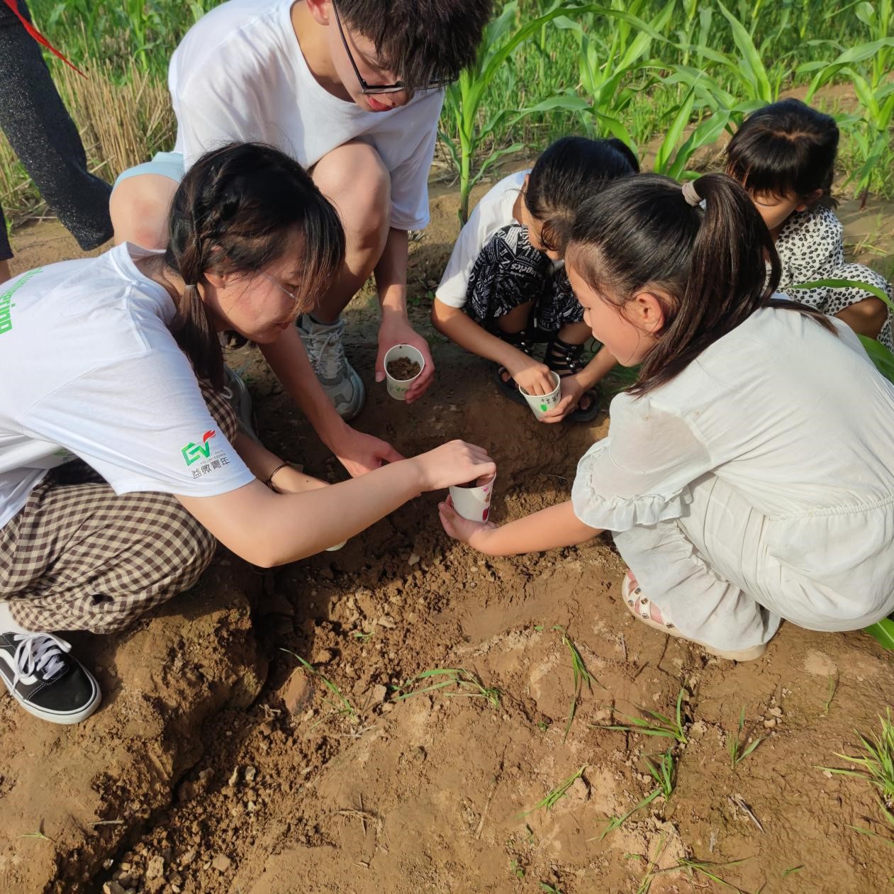 课后,为了让孩子们认识到“环境保护从你我做起,从身边小事做起”的理念,志愿者老师带领着孩子们到户外亲身体验种树。从挖土到撒种,再到浇水,孩子们一步一步完成自己的“种树工作”。通过让孩子们亲身劳作的体验,与大自然亲密接触,培养他们的动手能力,更加懂得树木的可贵,树立起保护环境与树木的观念。